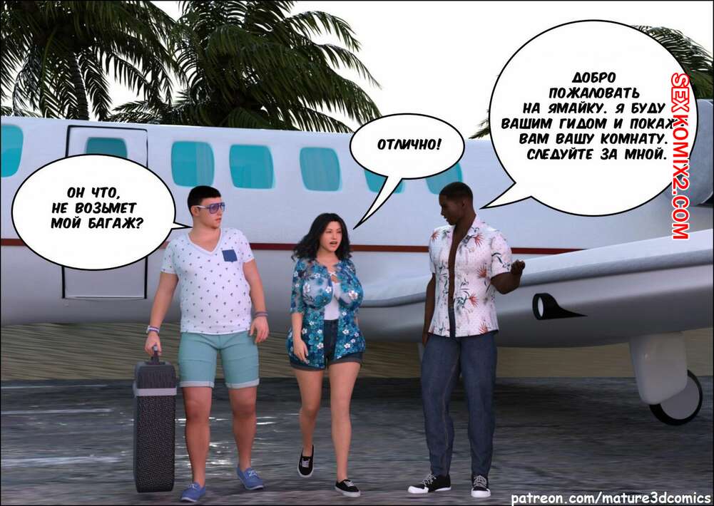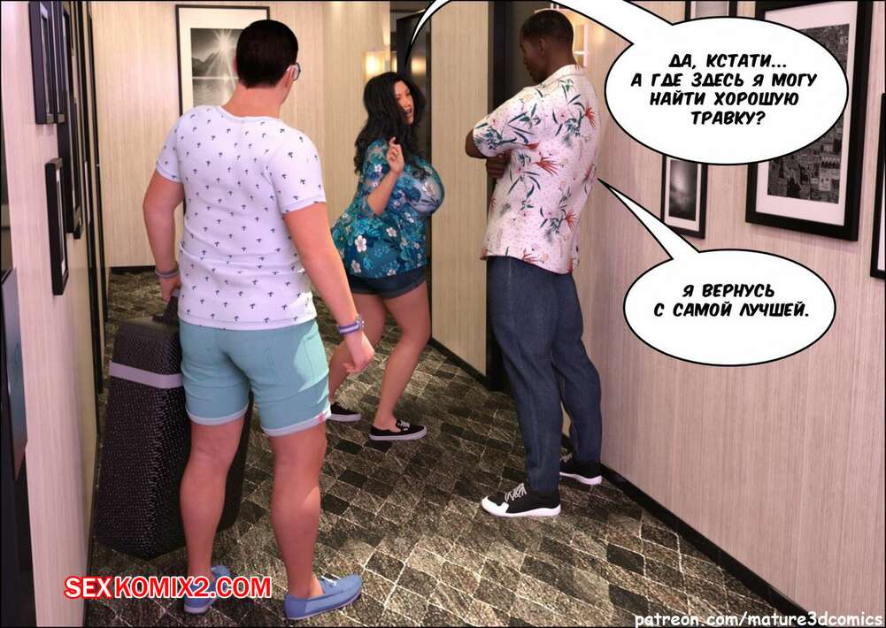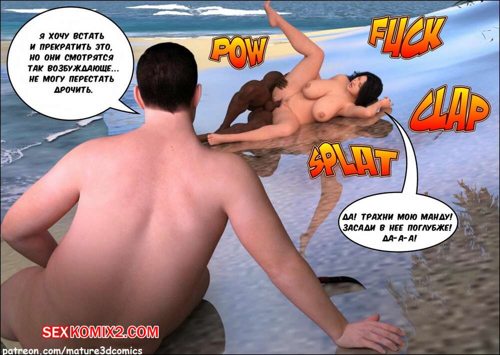Порно комикс Фантастическая поездка Сисястая милфа брюнетка поехала на море со своим мужем, где привлекла внимание черного парня. Он возбудил ее и сучка стала сосать большой черный хуй парня, а затем дала ему себя хорошенько выебать.