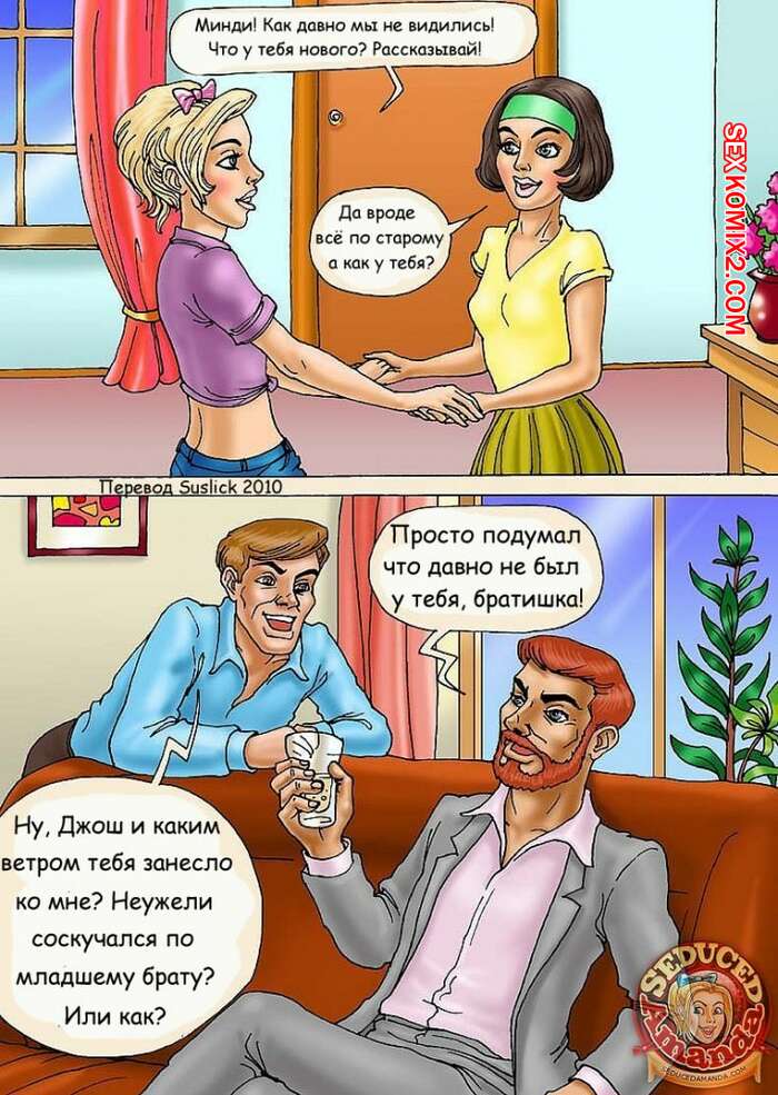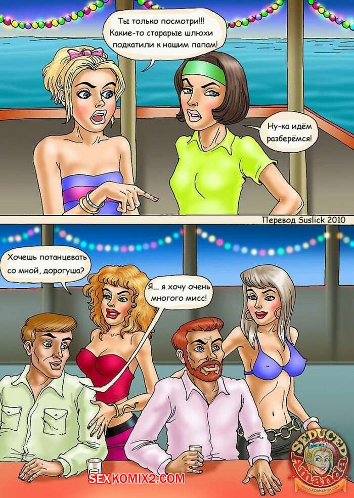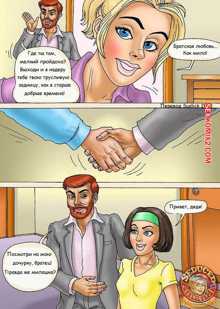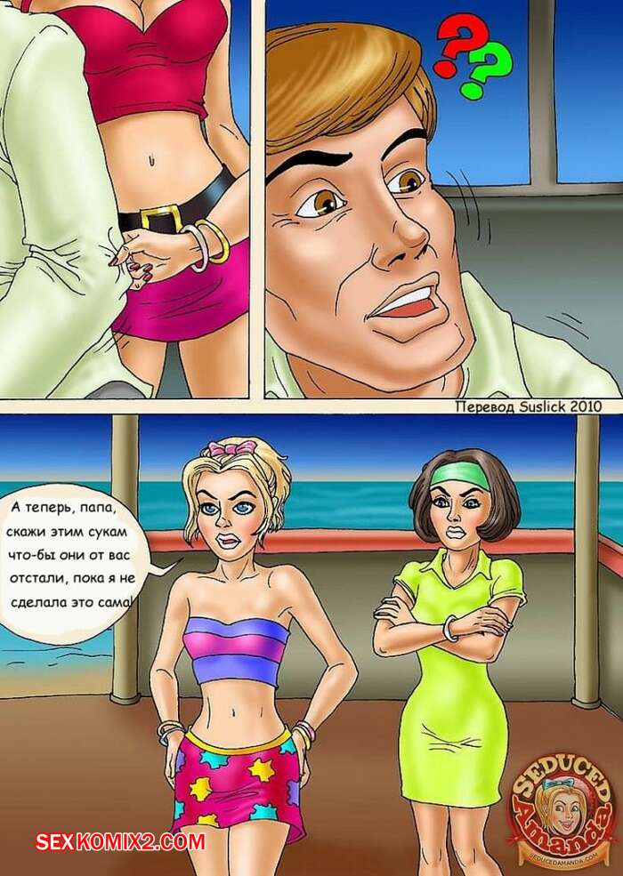 Порно комикс Аманда на море Молодая горячая красотка блондинка отправилась на море со своим папой, его братом и ее женой. Вместе они решили повеселиться и красотки стали сосать большие хуи парней и дали им себя выебать.