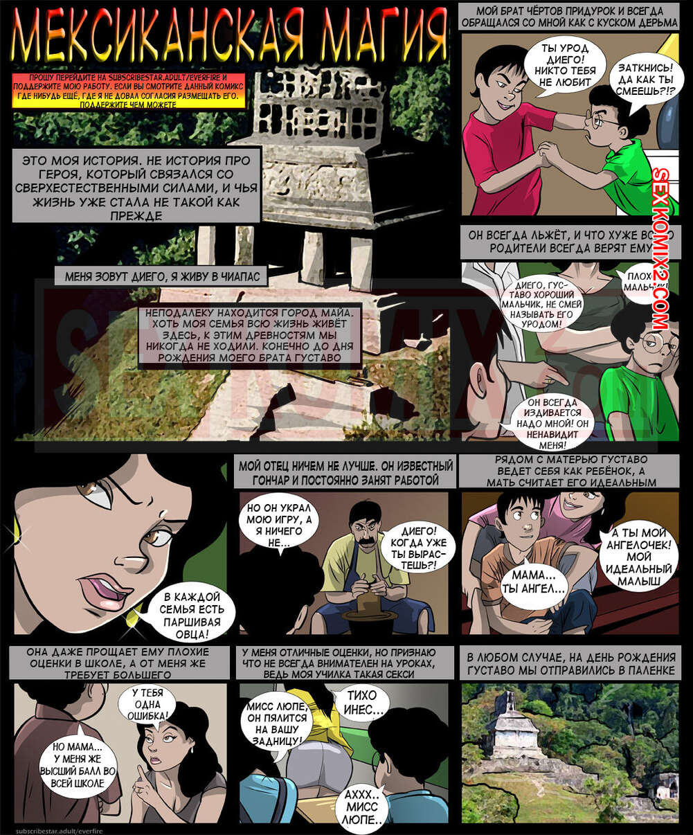Порно комикс Мексиканская магия. Mexican magic. Everfire После расследования загадочного места в Мексике, парнишка овладел магией. Теперь он решил этим воспользоваться, чтобы соблазнить свою сексуальную мамку и регулярно ее трахать.
